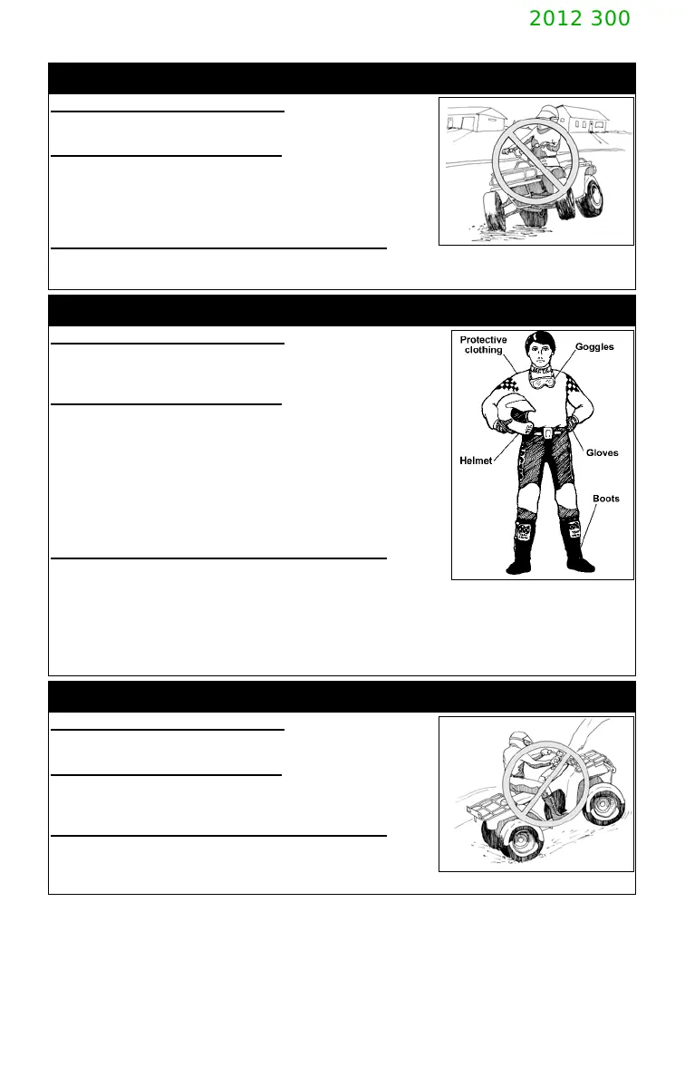 Never operate the ATV on any paved surfaces, including sidewalks, driveways, park-