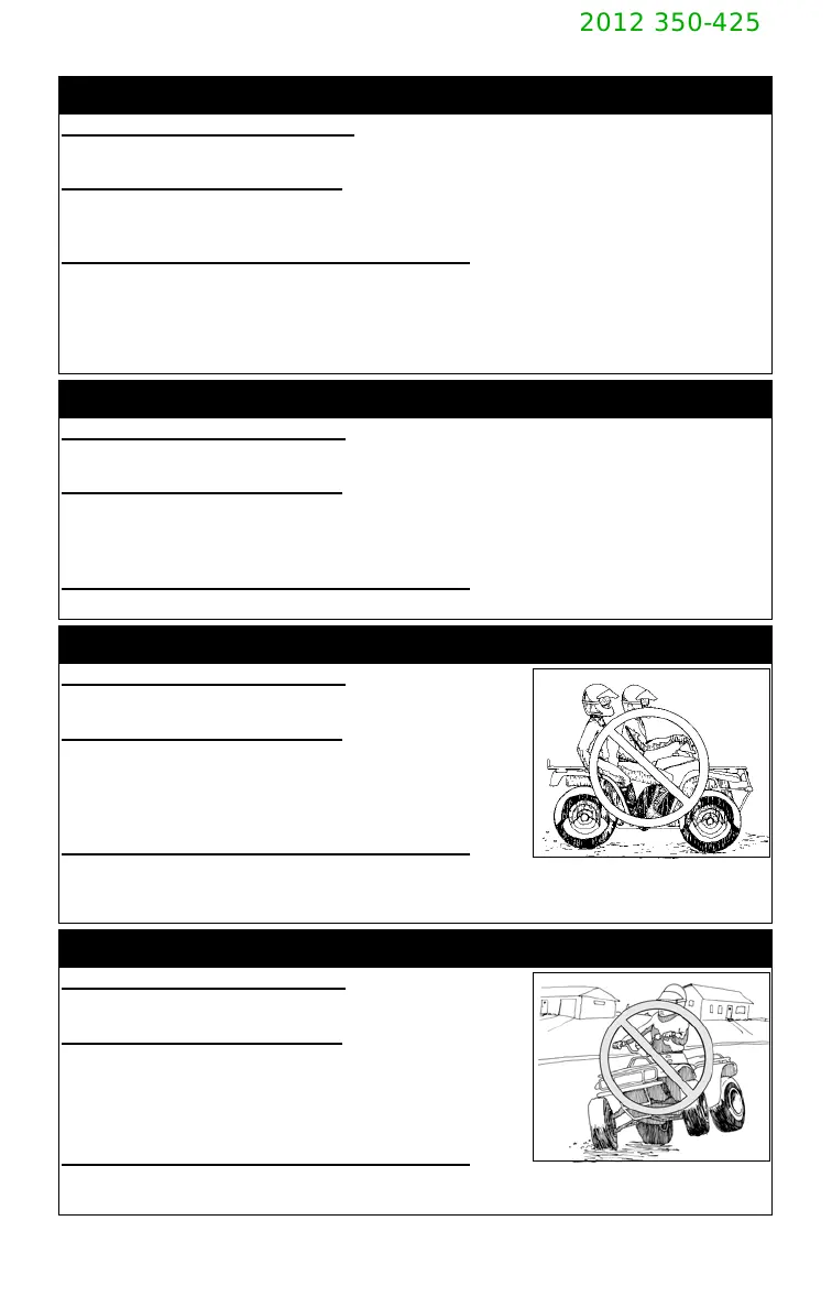 Never operate the ATV on any paved surfaces, including sidewalks, driveways, park-