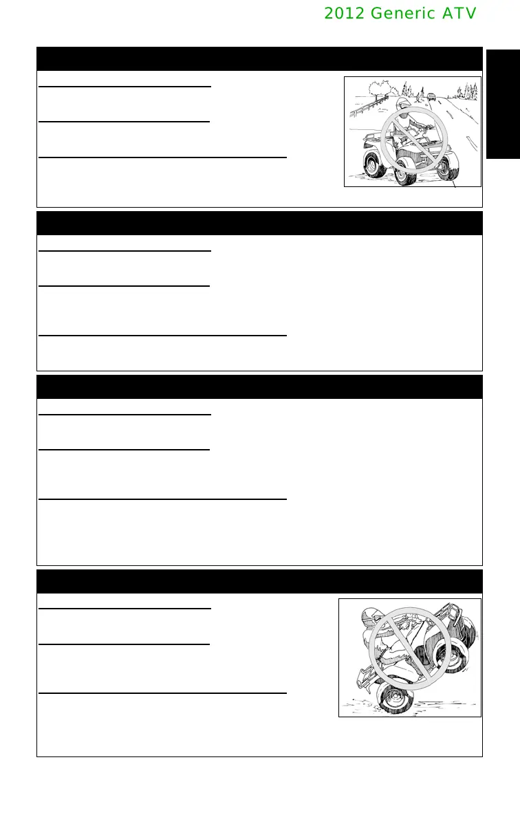 Operating the ATV with improper tires or with improper or uneven tire pressure.