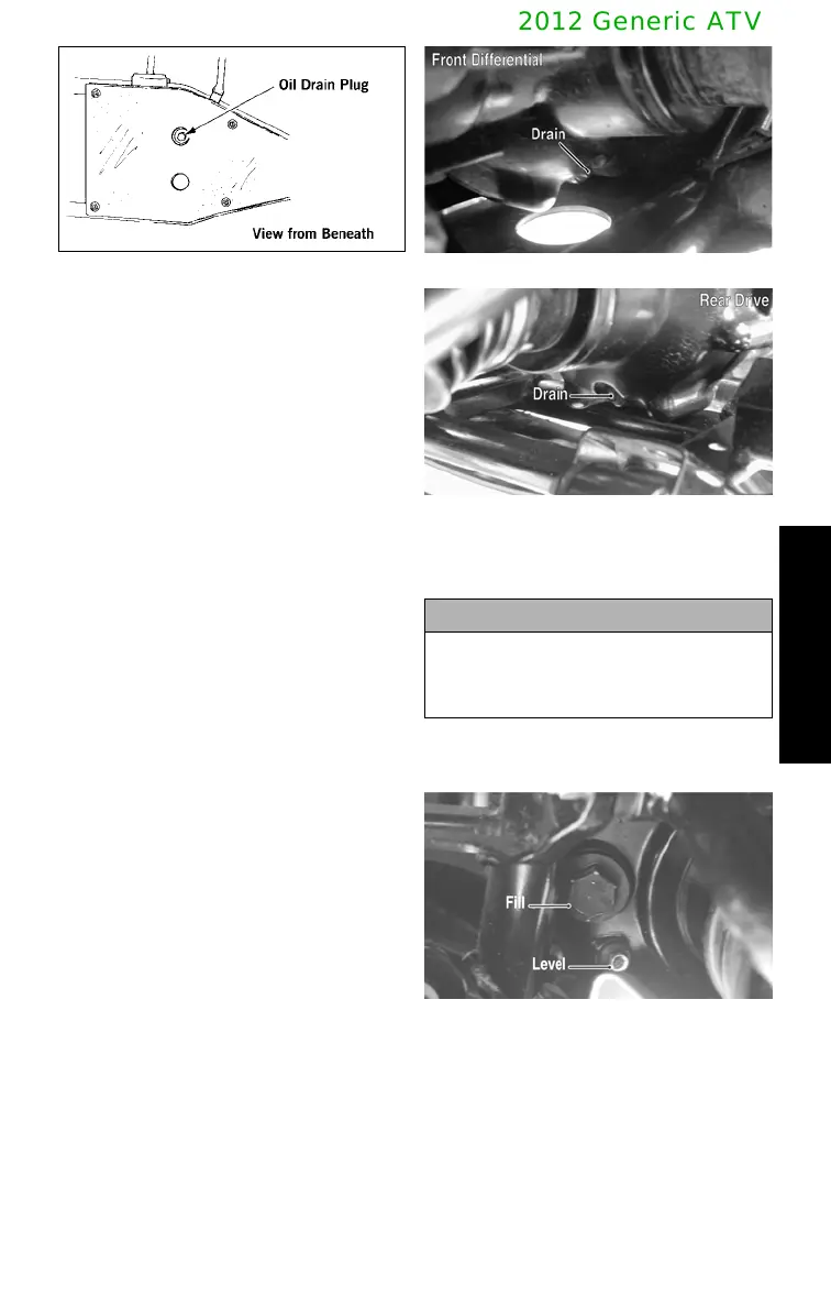 3. Drain the oil into a drain pan by remov-