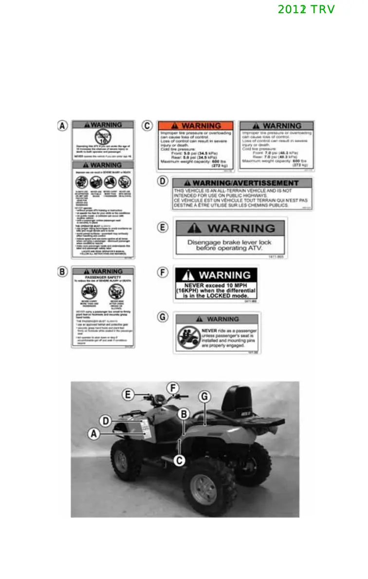 An Arctic Cat ATV comes with several labels containing important safety informa-