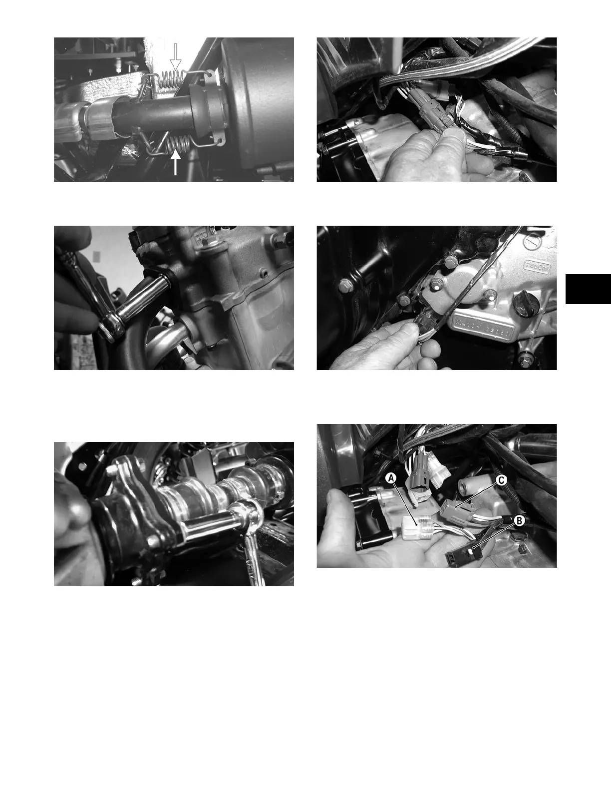 (A), stator coil connector (B), and the CDI connector