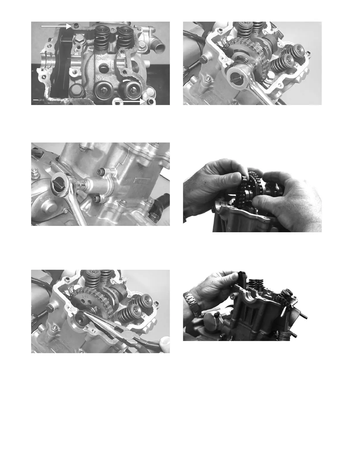 6. While holding the chain, slide the sprocket and cam-