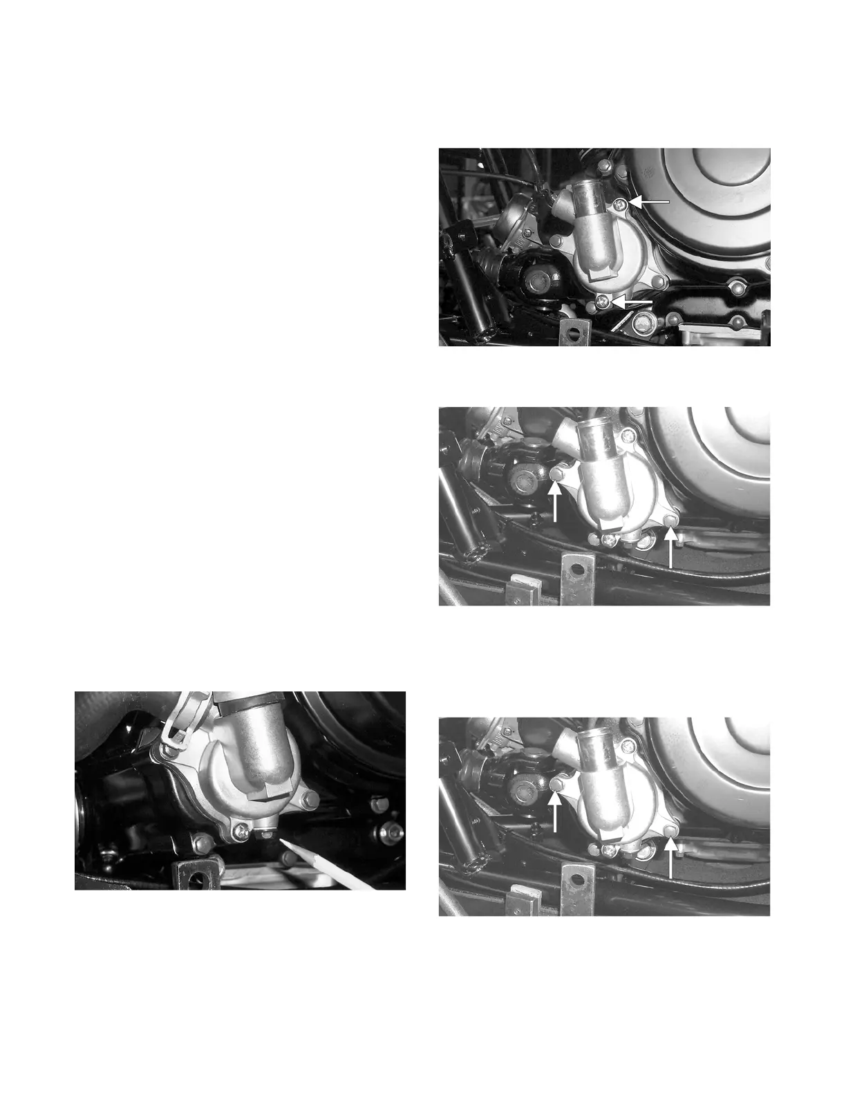 6. Remove the two cap screws securing the water pump