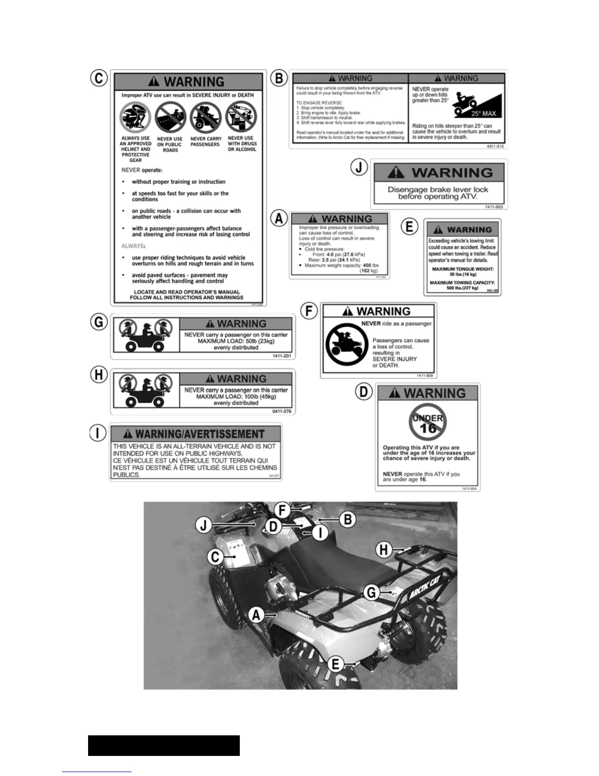 Arctic Cat 300 - Warning Labels; Key Safety Label Explanations