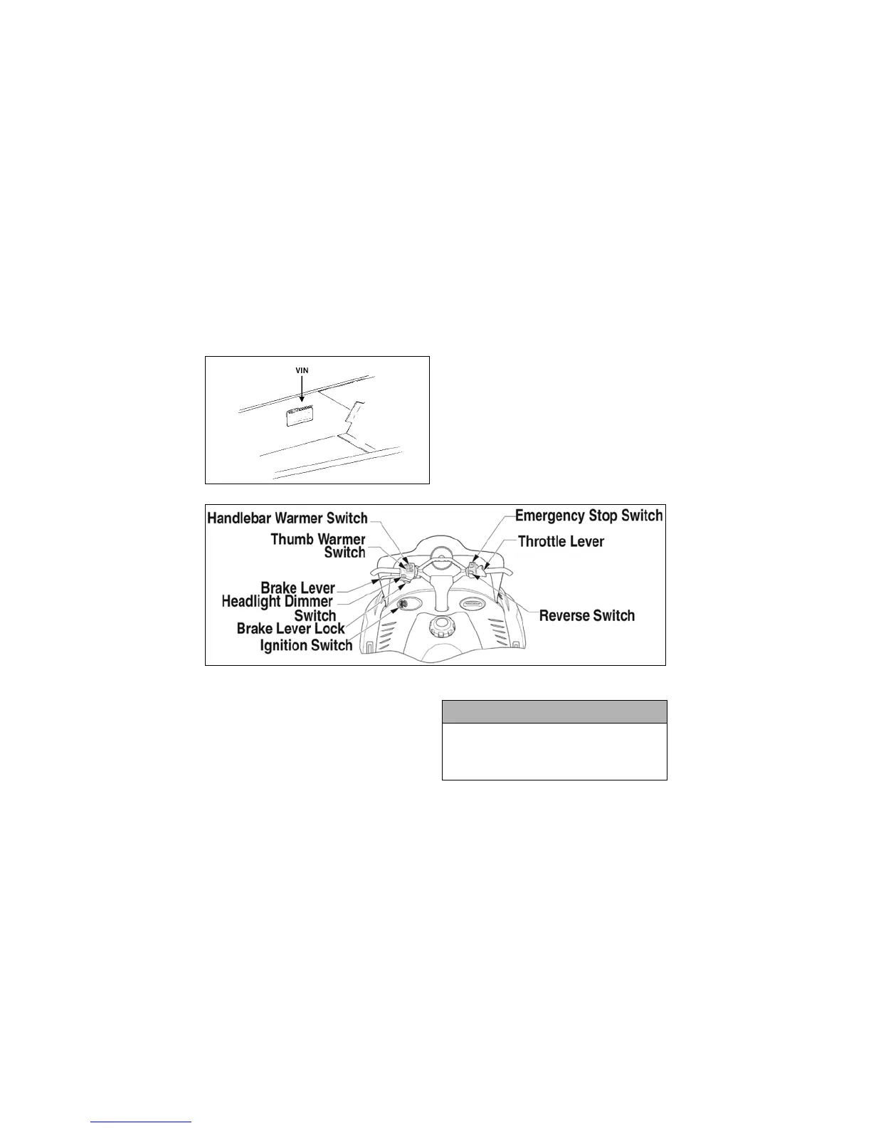 side footrest and on a decal beneath the