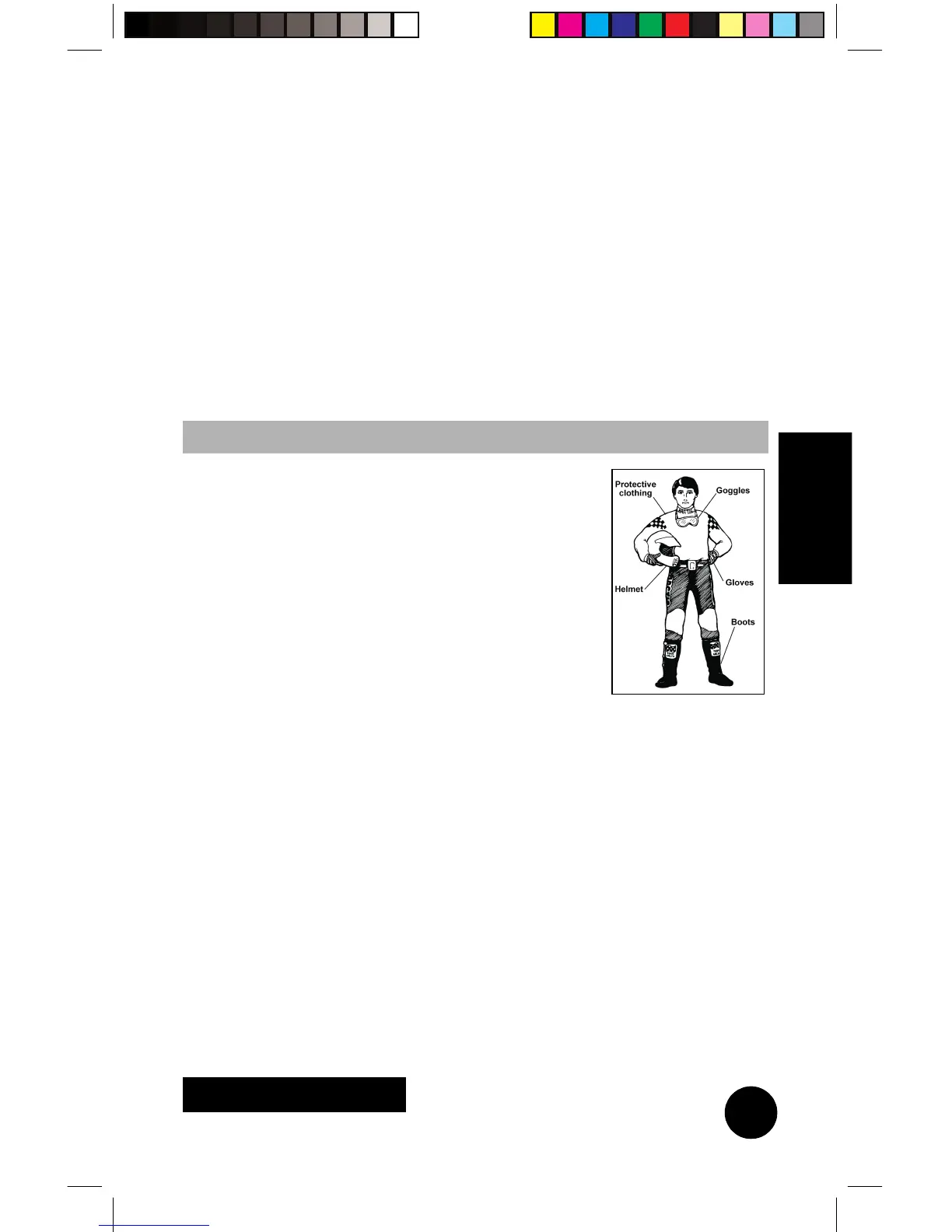 Always wear clothing suited to the type of riding
