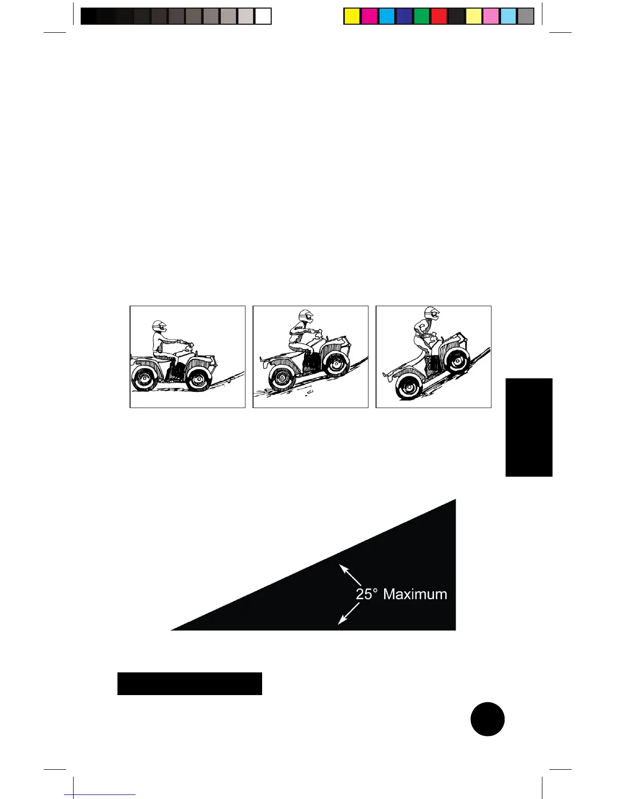 NEVER OPERATE UP OR DOWN HILLS