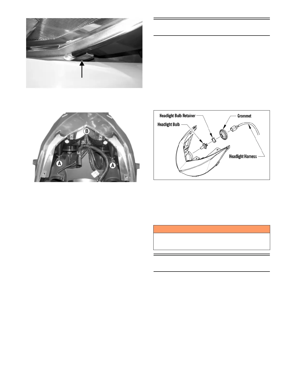 7. Loosen the two side headlight assembly screws (A);