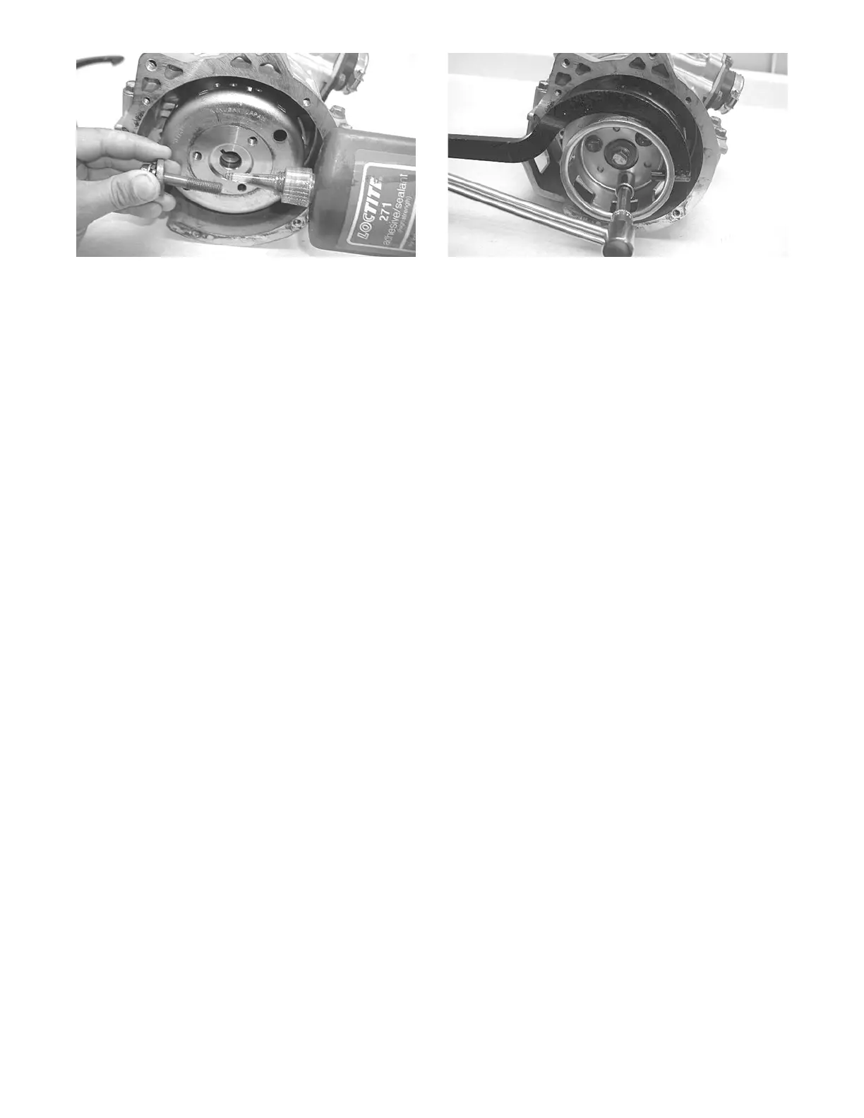 42. Secure the starter pulley to the flywheel with three