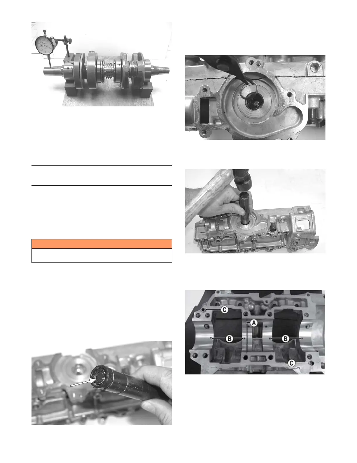 6. Place the crankshaft end bearings into position mak-