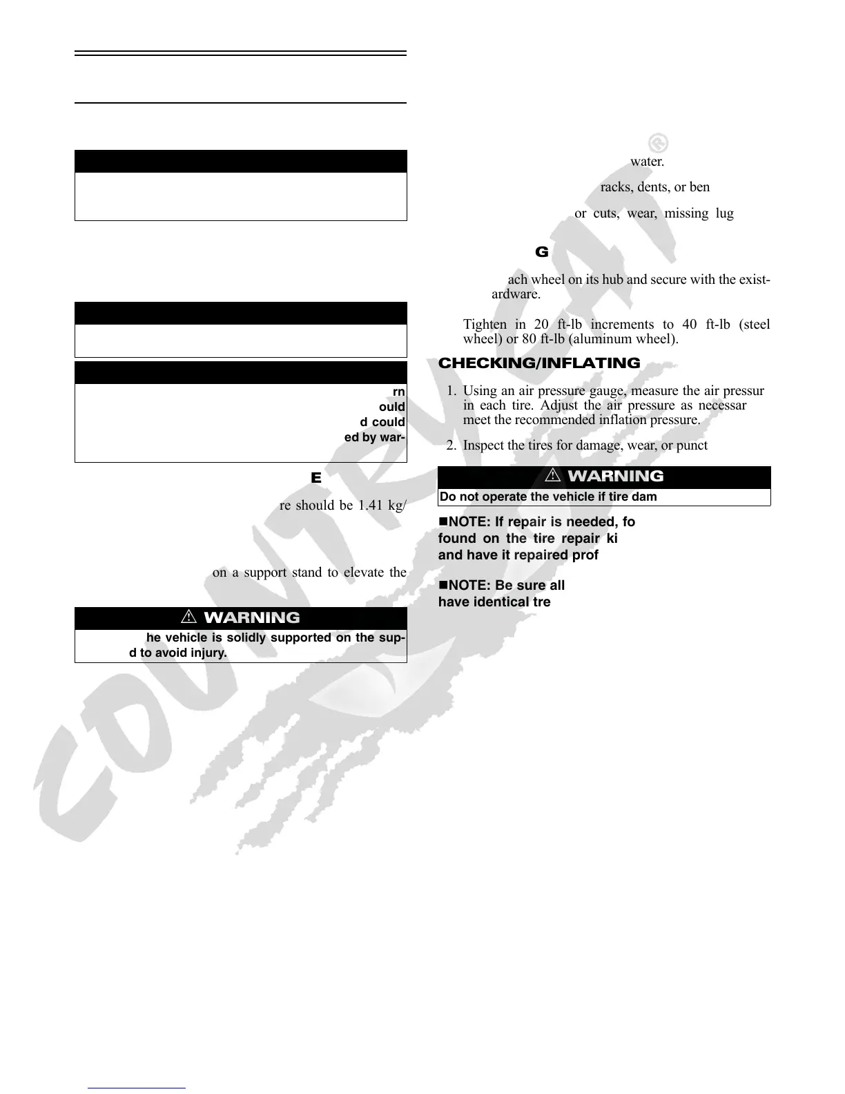 NOTE: Be sure all tires are the specified size and