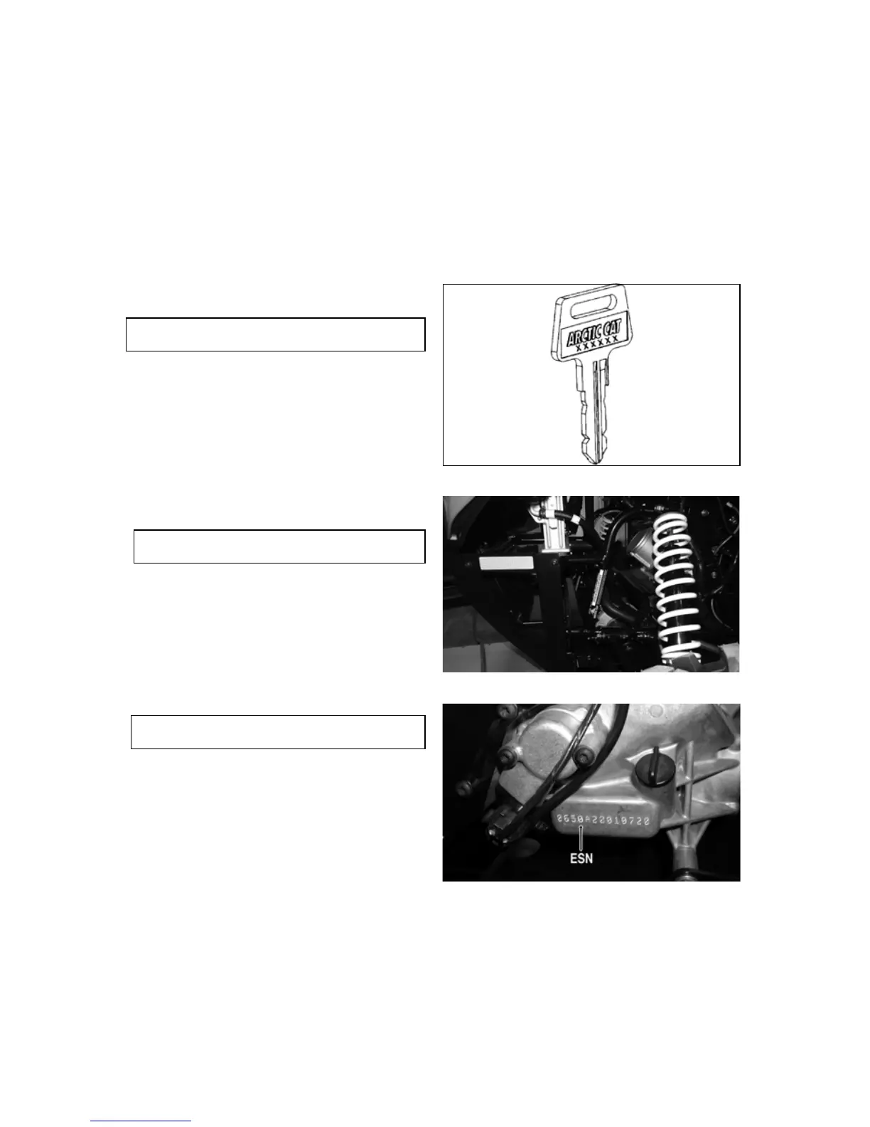 Always provide the name, VIN, and ESN when contacting an authorized Arctic Cat