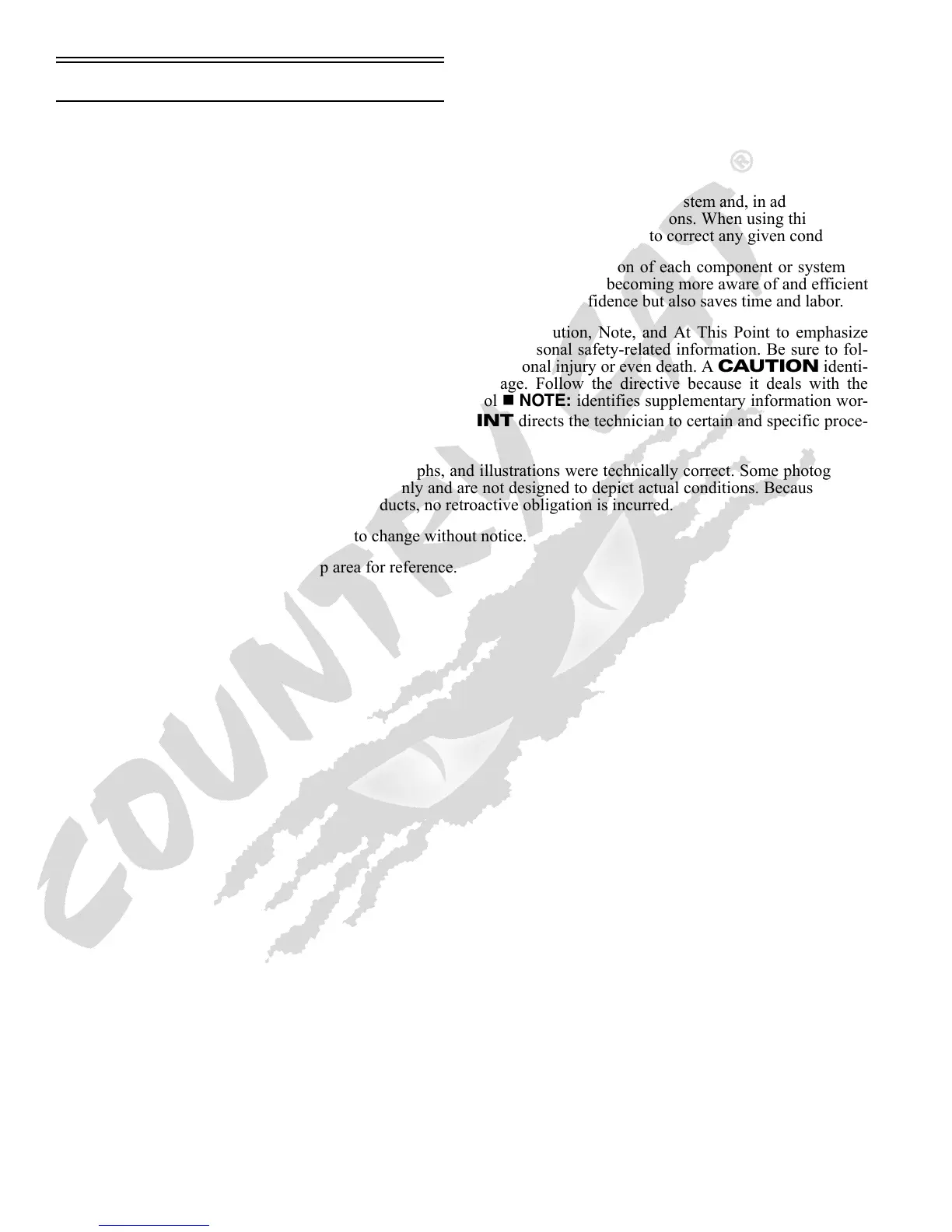 Cat Wildcat models (see cover). The complete manual is designed to aid service personnel in service-oriented applica-