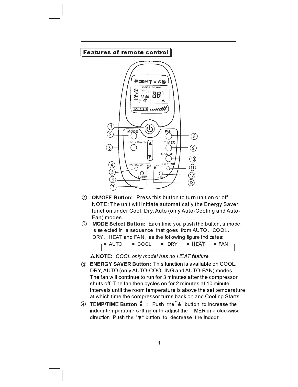 DRY, AUTO (only AUTO-COOLING and AUTO-FAN) modes.