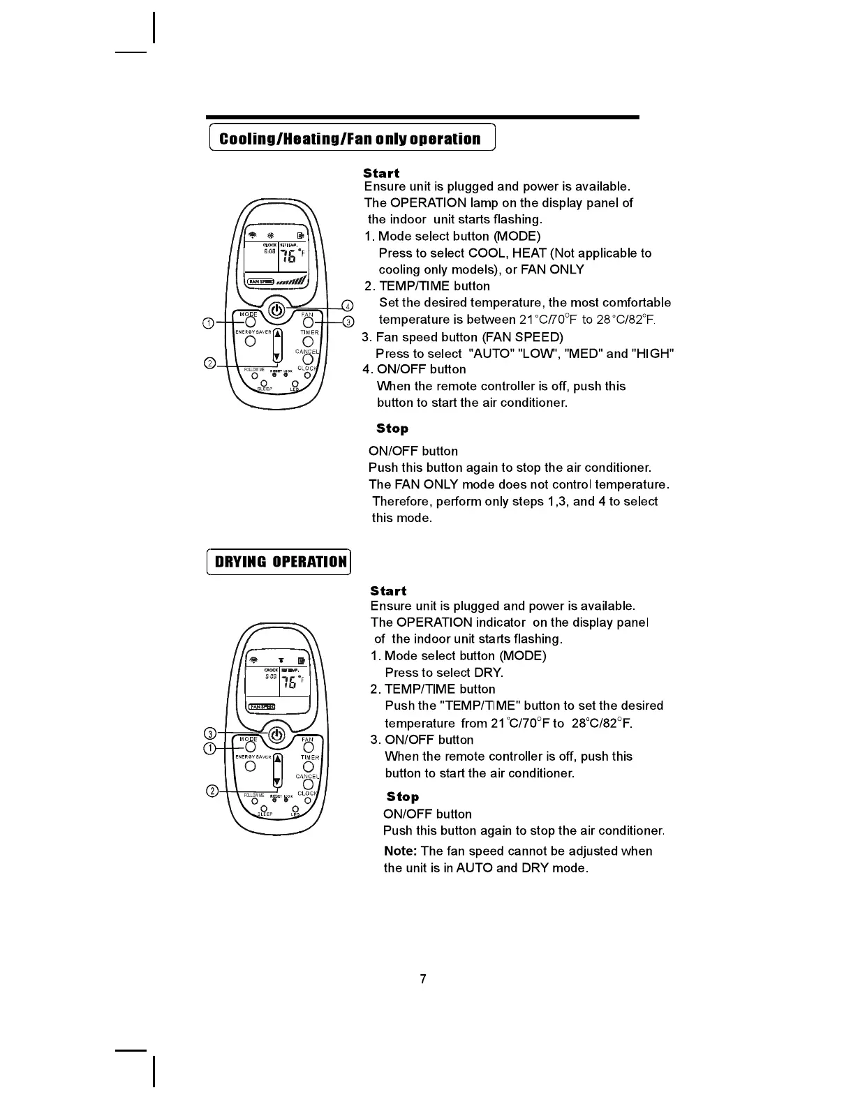 Arctic King EWK+06CR5 - Cooling, Heating, Fan Operation; Drying Operation; Operation Steps