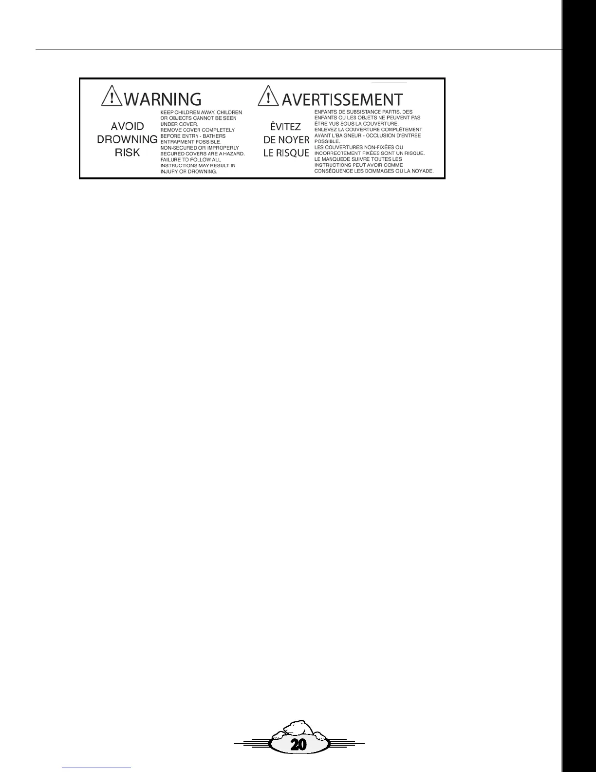 Non-secured or improperly secured covers are a hazard. Open the cover to its fully open position before