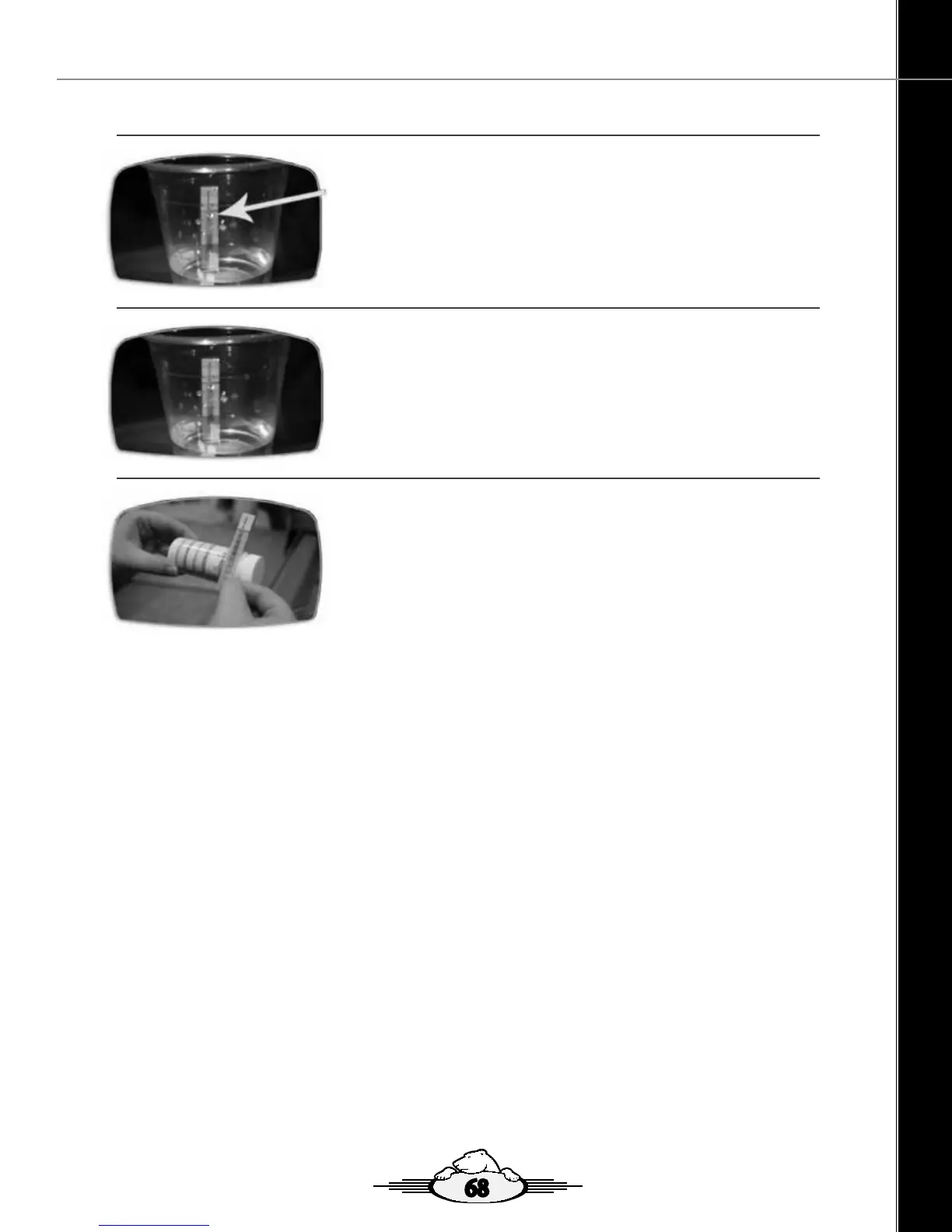 Leave strip in water for 3 – 5 minutes until yellow band at top of strip turns dark.