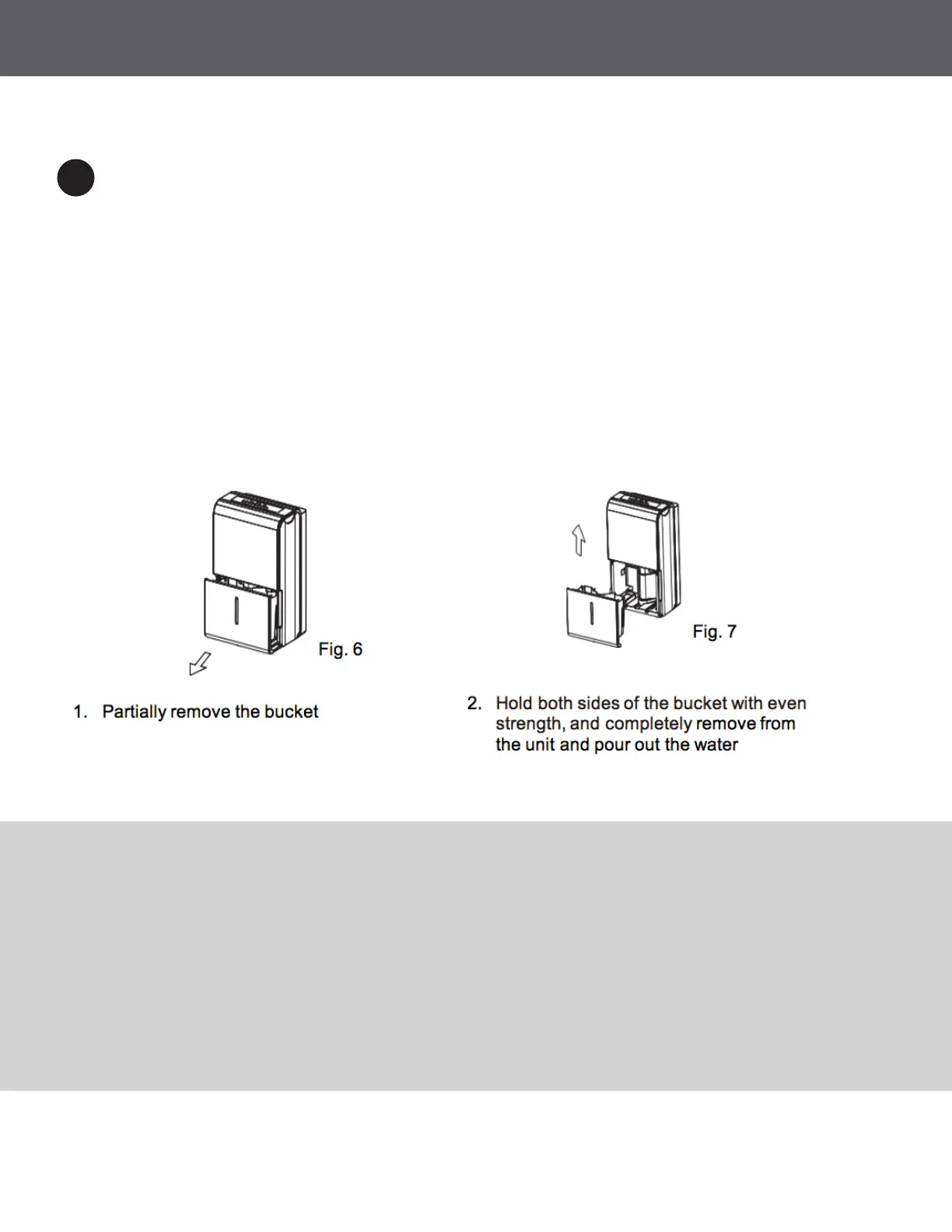 • If the bucket is removed while the unit is running, the compressor and the fan will turn off, the unit will beep 8 times