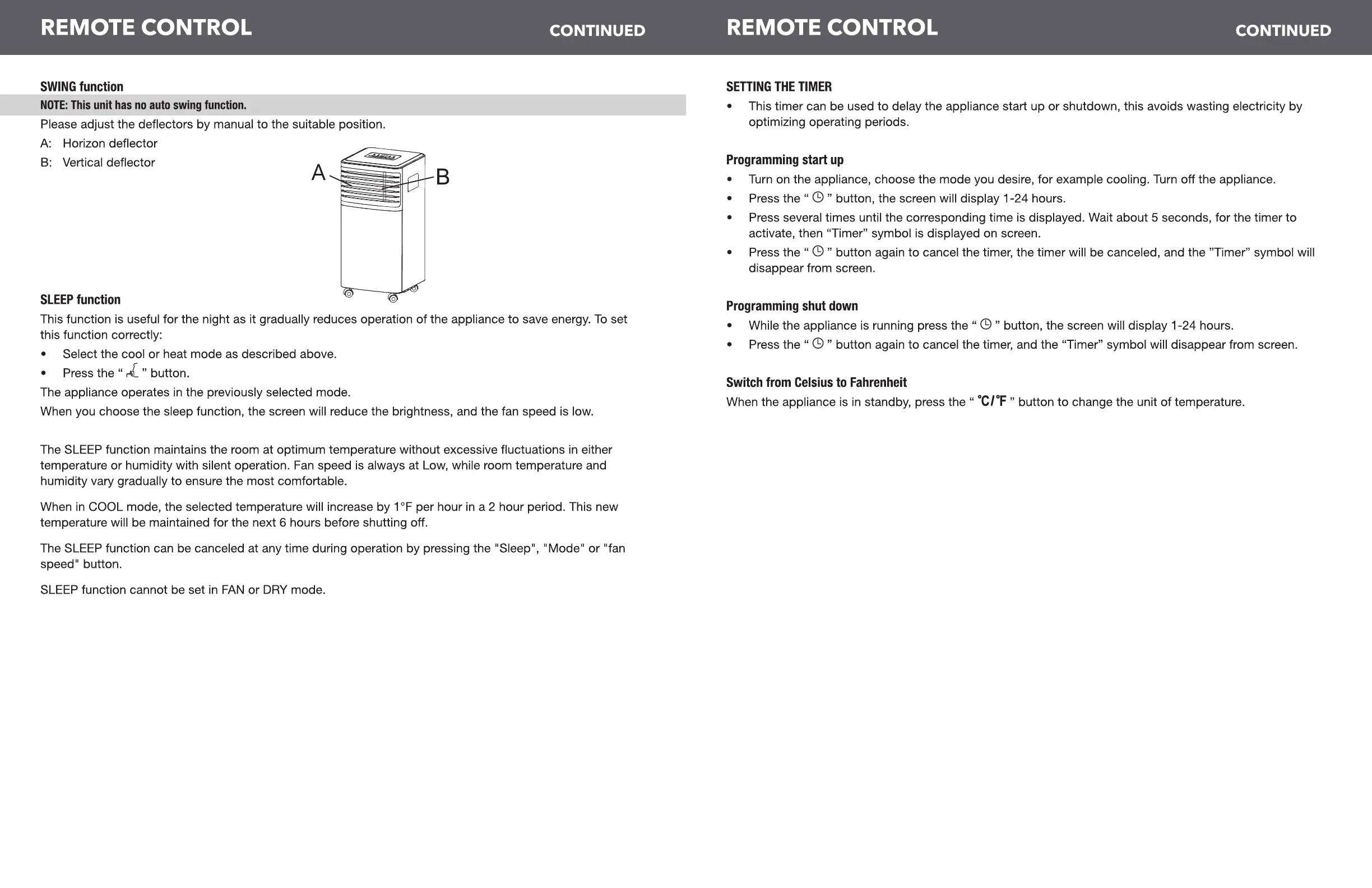 ARCTIC WIND 2AP7500A - Remote Control Continued; Dry Mode (Remote); Sleep Function; Setting the Timer (Remote)