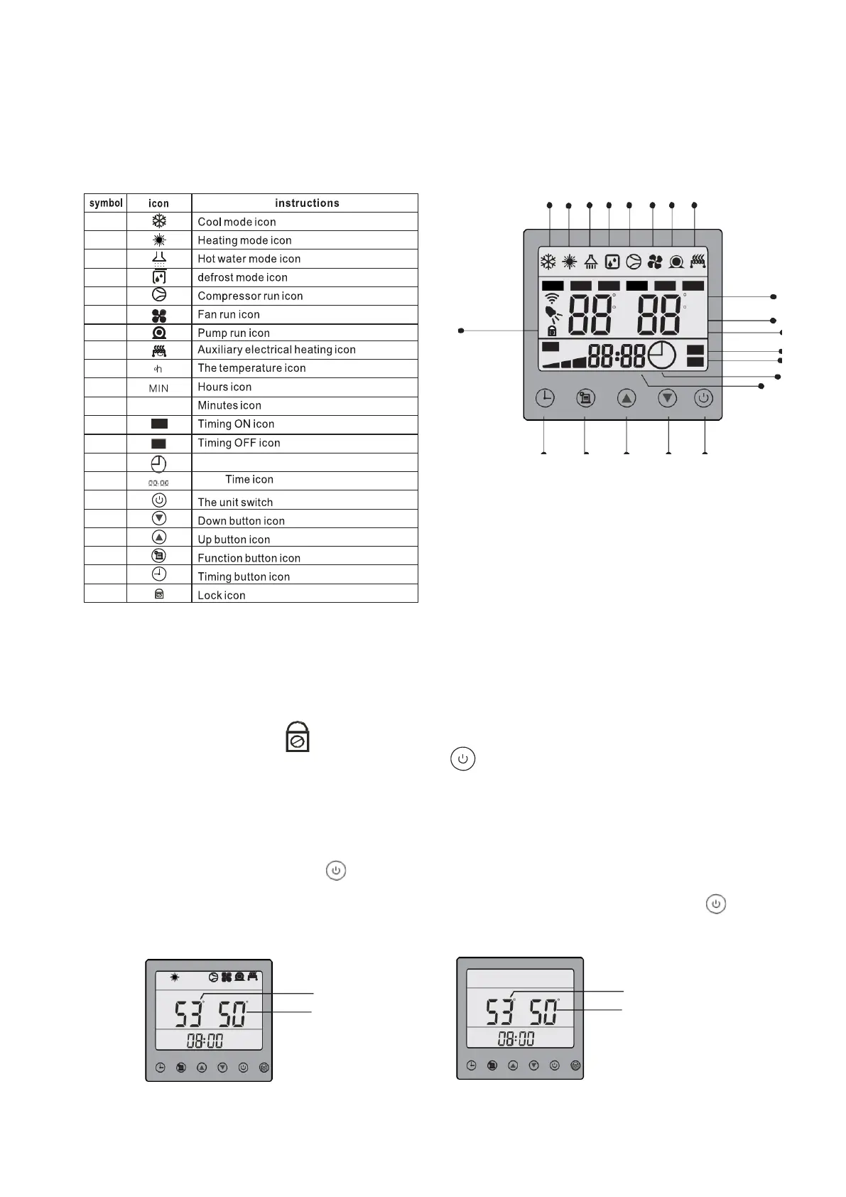 display on the wired controller (cool or hot water mode or both). Long-press the on/off button