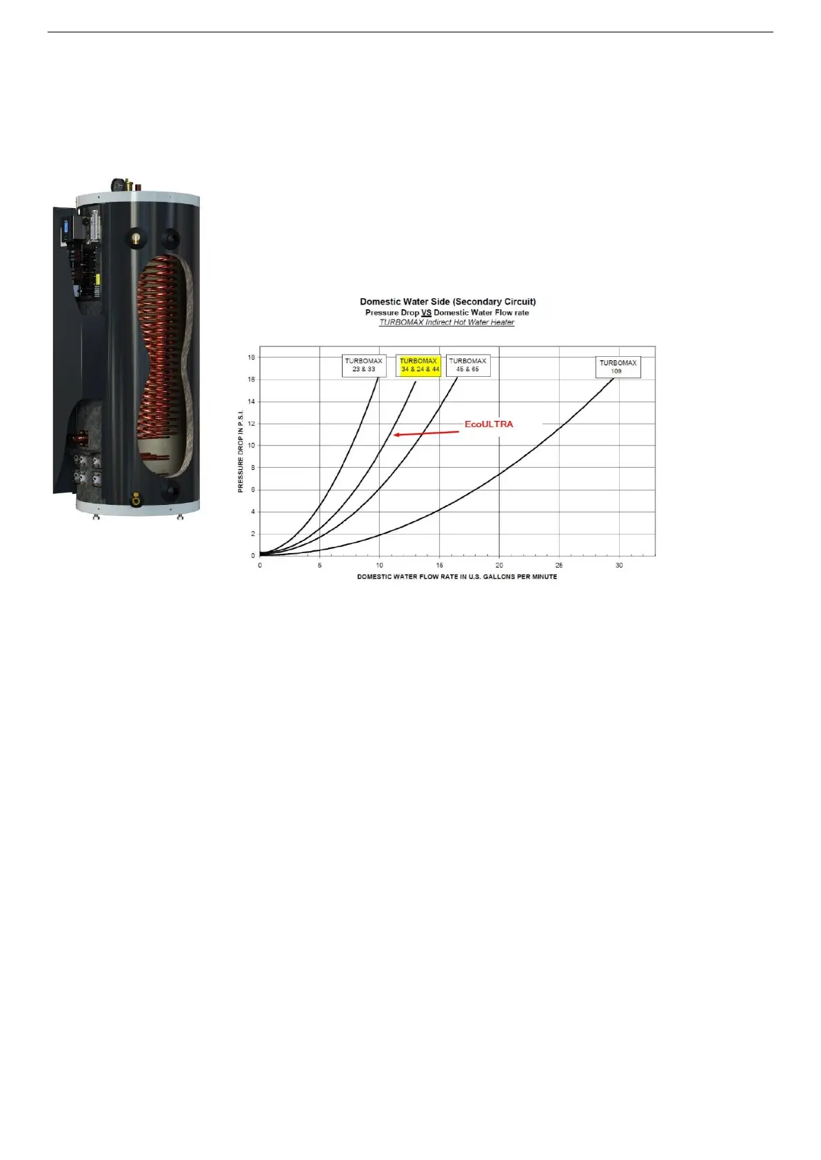 The EcoULTRA tank is equipped with an optional internal Heat Exchanger (HX) for domestic hot water