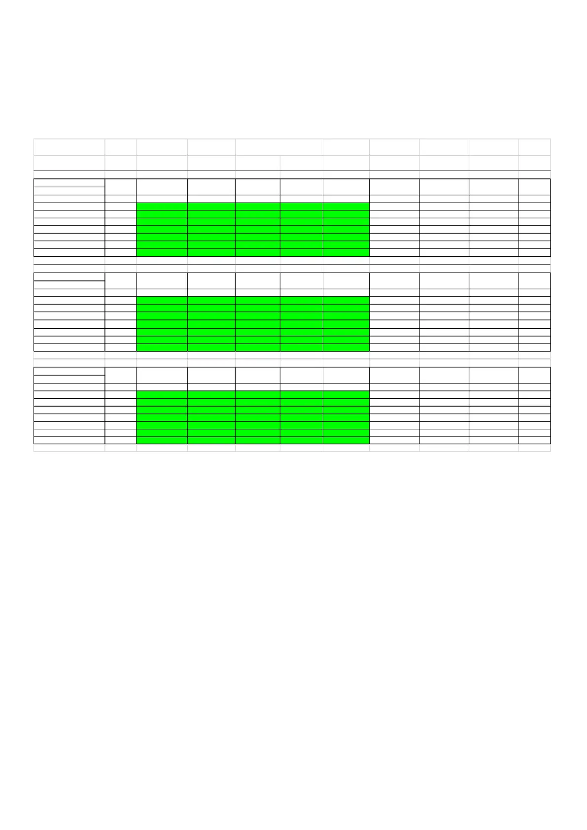 Heating Performance Table