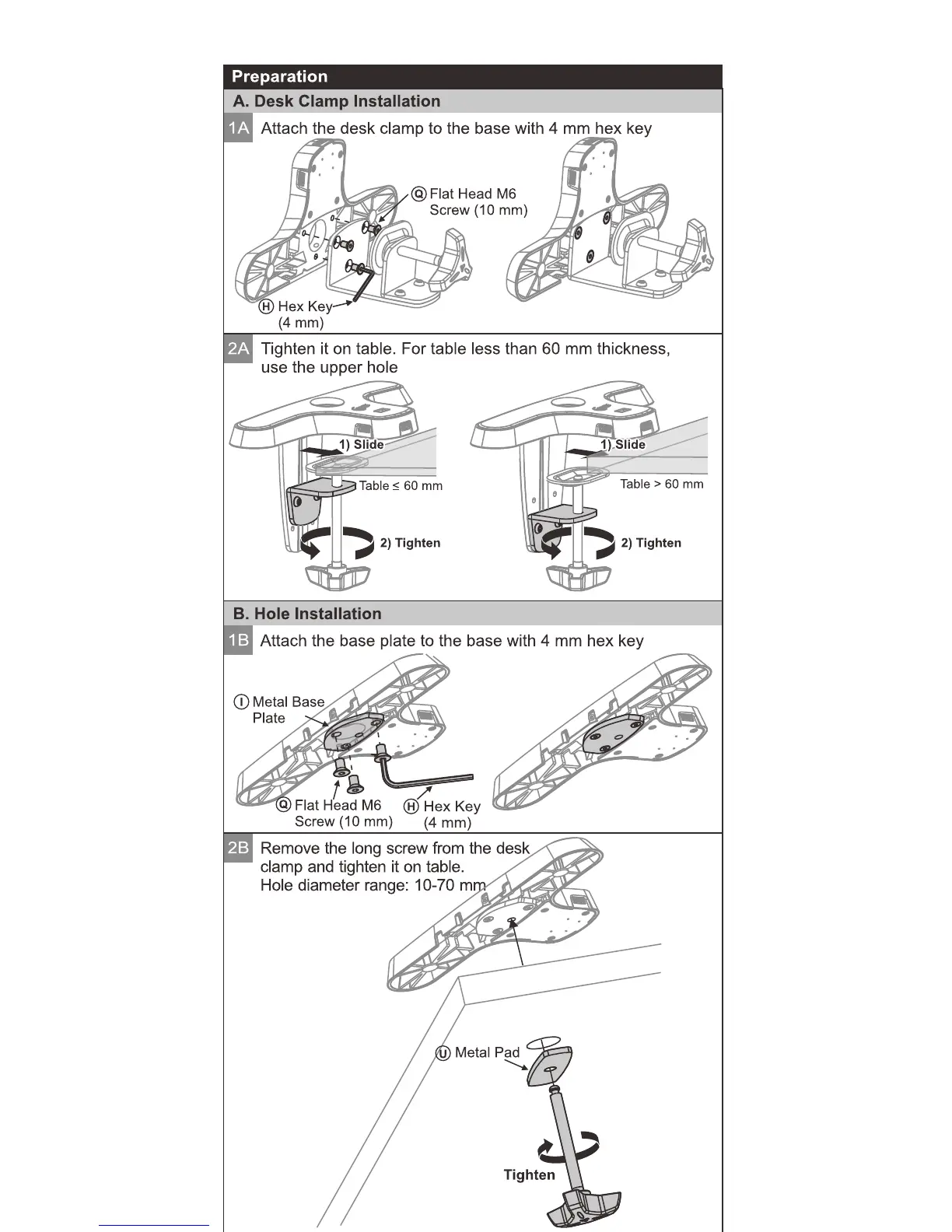 Arctic Z1 Pro - Installation Preparation; Desk Clamp Installation; Hole Installation