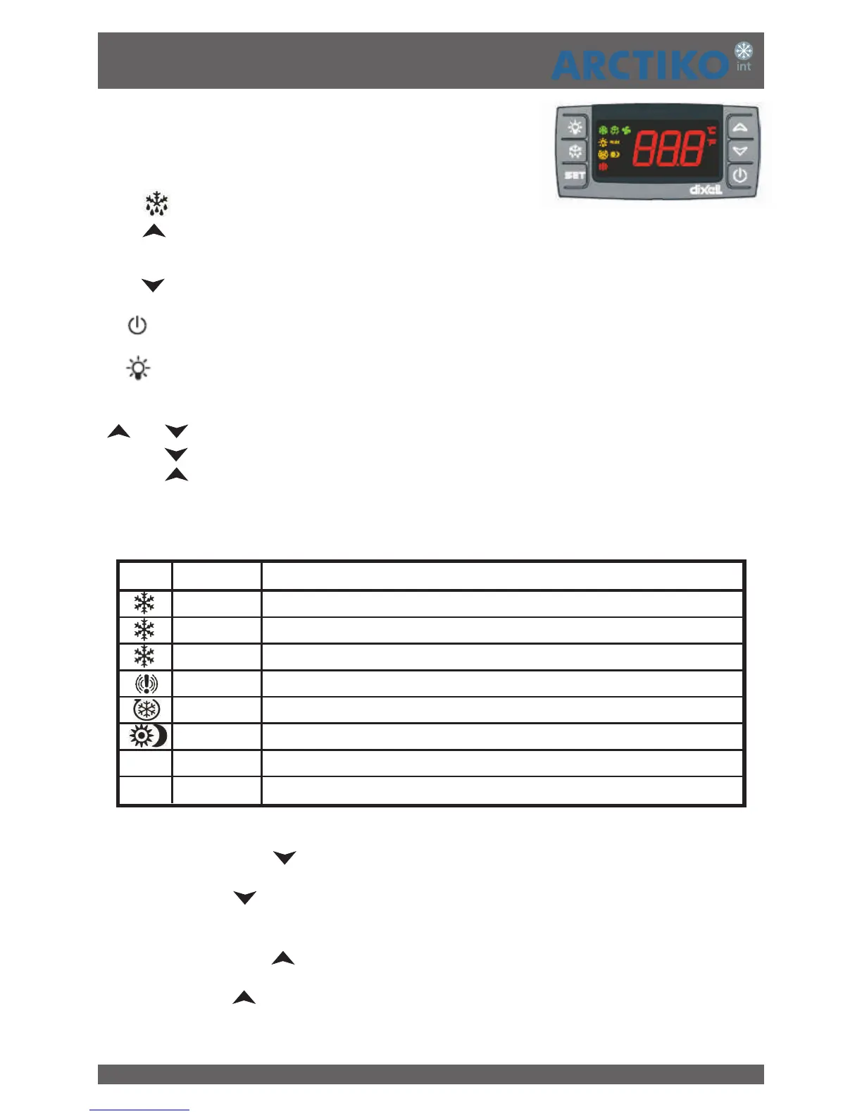 (DOWN): To see the min stored temperature; in programming mode it browses the parameter codes or