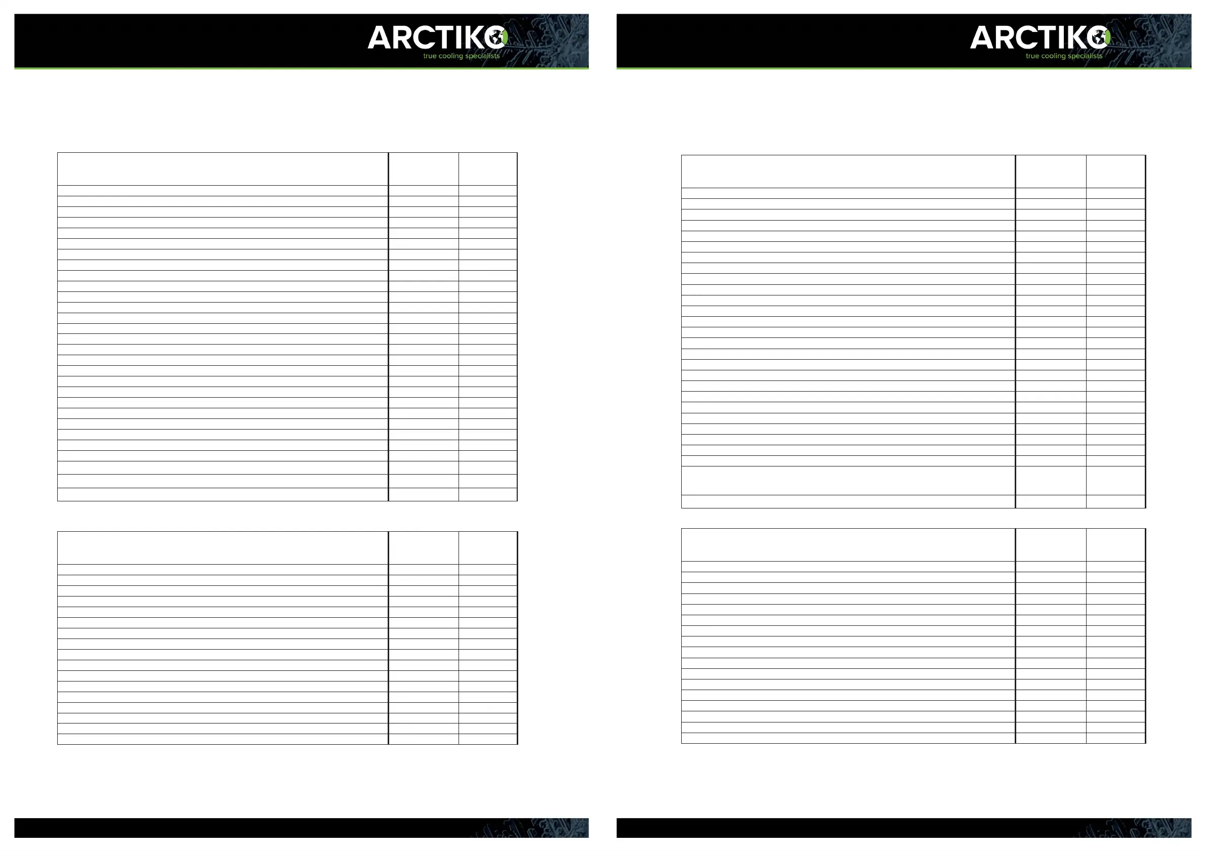Arctiko ULUF - Default Settings (ULUF 60-800 Series); ULUF 60-800 Series Settings Comparison; Default Settings (ULUF 15;65;125 Series); ULUF 15;65;125 Series Settings Comparison