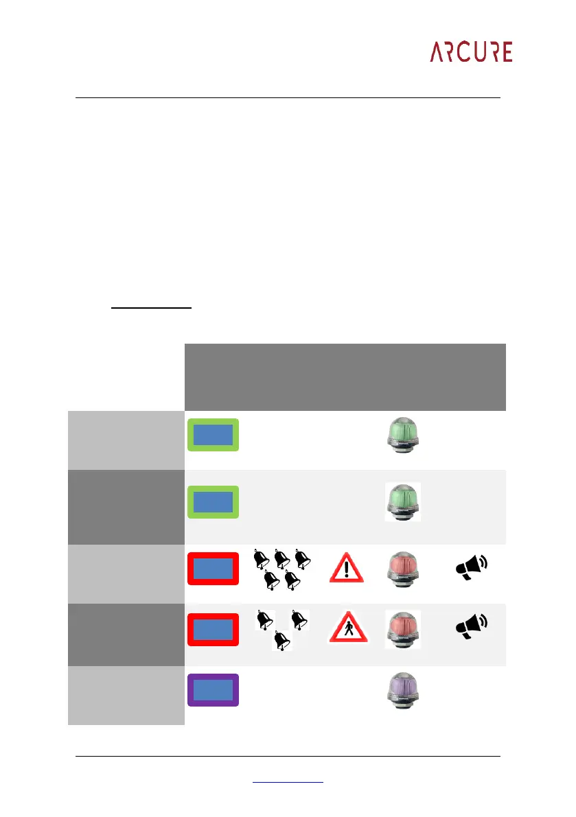• a visual alarm with the LED and/or an audible alarm with an