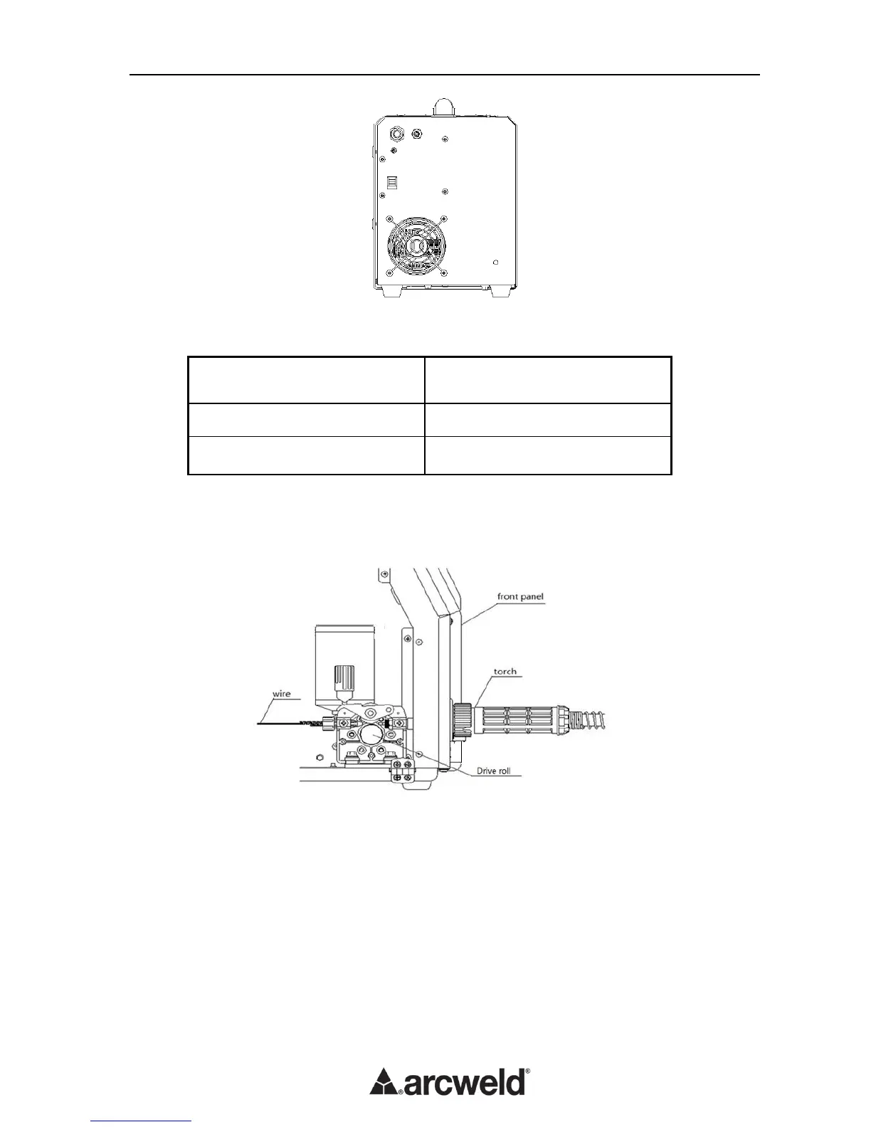 * Open the side panel of wire feeder and mount the wire spool on the spool post. The end of the wire