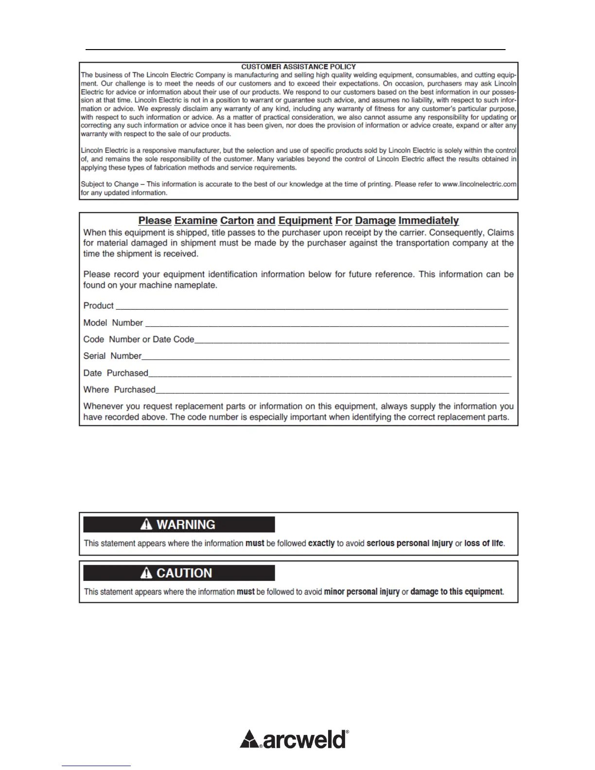 equipment. Save this manual and keep it handy for quick reference. Pay