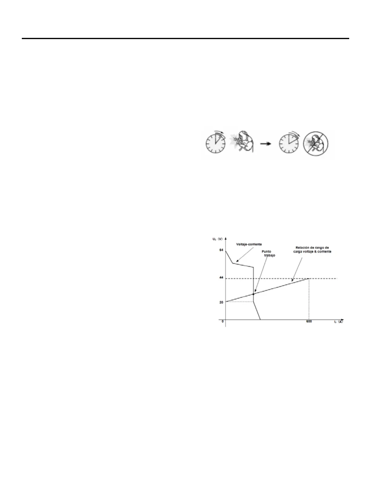I2 ≤600A,U2=20+0,04 I2(V); Cuando I2>600A,U2=44 (V)