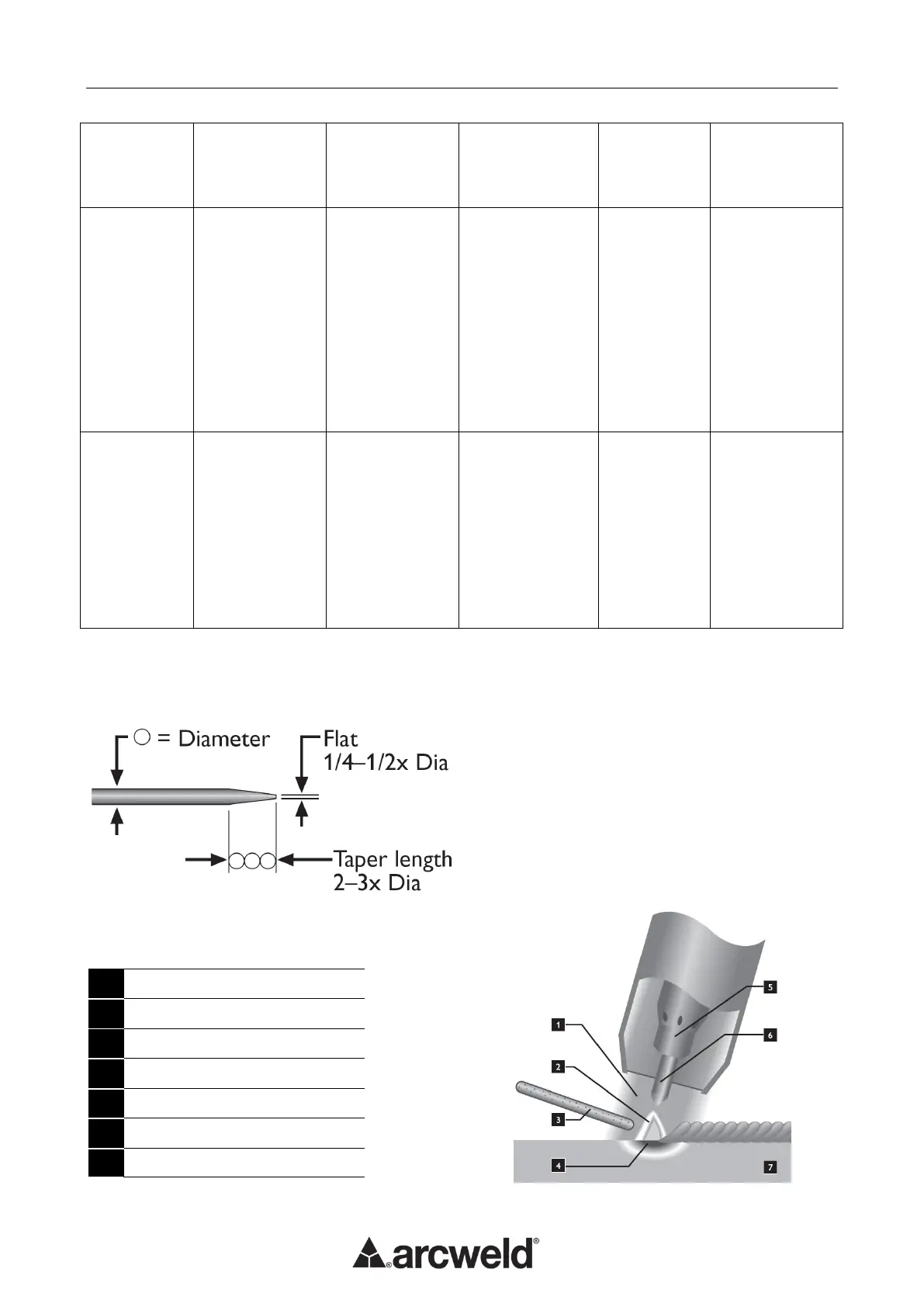 To optimize the welding process, it is recommend to grind the electrode prior to welding as described in the