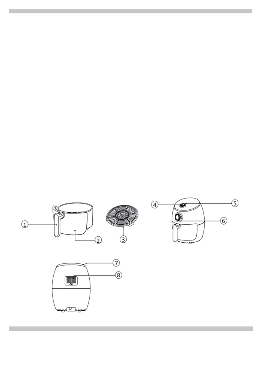 - Emelje ki a tartályt (2) az olajsütőből és helyezze a hozzávalókat a kosárba (3). Az ételek elkészítésére