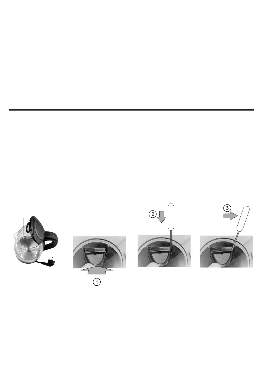 Per la pulizia, rimuovete il ltro dal bollitore e lavatelo sotto l’acqua corrente con una spazzola morbida.