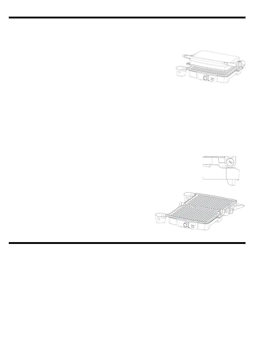 Open the grill using the handle (1) and put the food on the lower grill (you can