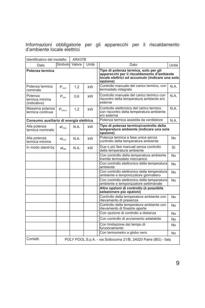 Informazioni obbligatorie per gli apparecchi per il riscaldamento