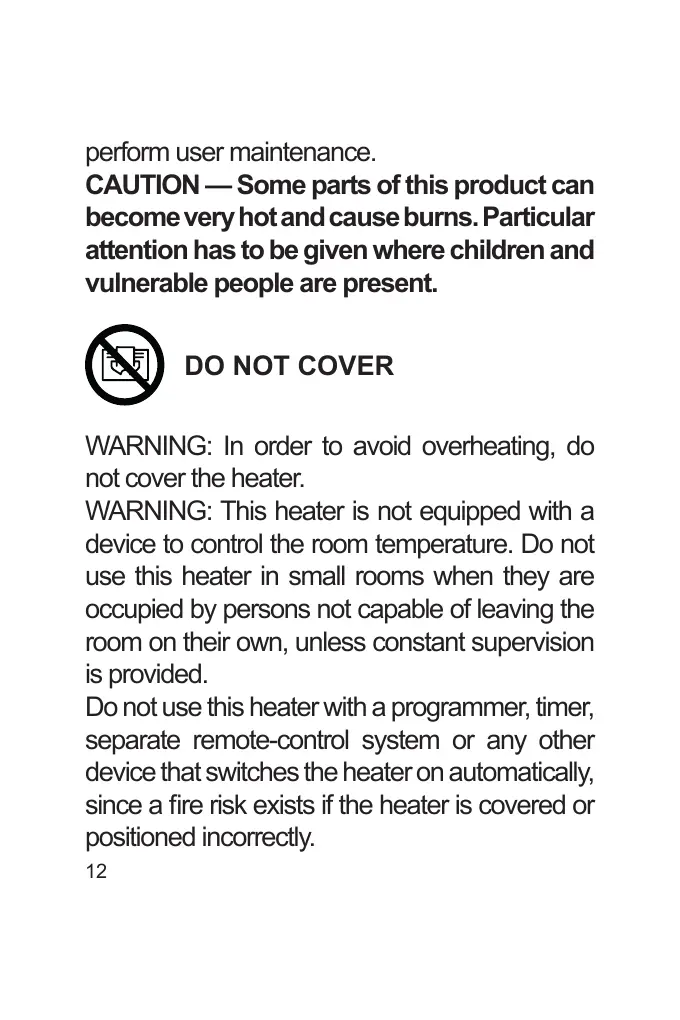 since a re risk exists if the heater is covered or