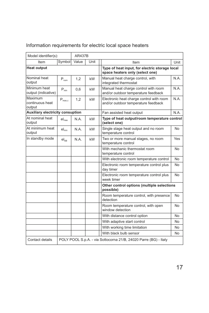 Contact details POLY POOL S.p.A. - via Sottocorna 21/B, 24020 Parre (BG) - Italy