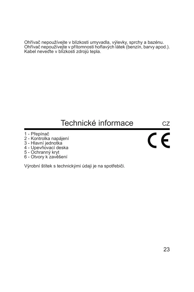 Ohřívač nepoužívejte v blízkosti umyvadla, výlevky, sprchy a bazénu.