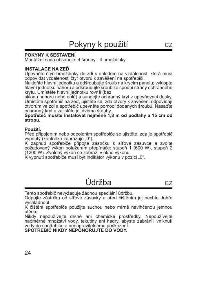 otvorům ve zdi a spotřebič upevněte pomocí dodaných šroubů. Nasaďte