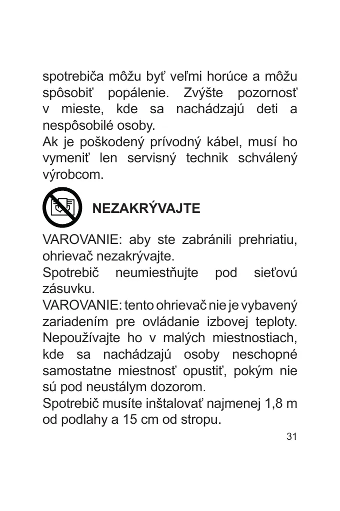 ohrievač nezakrývajte.