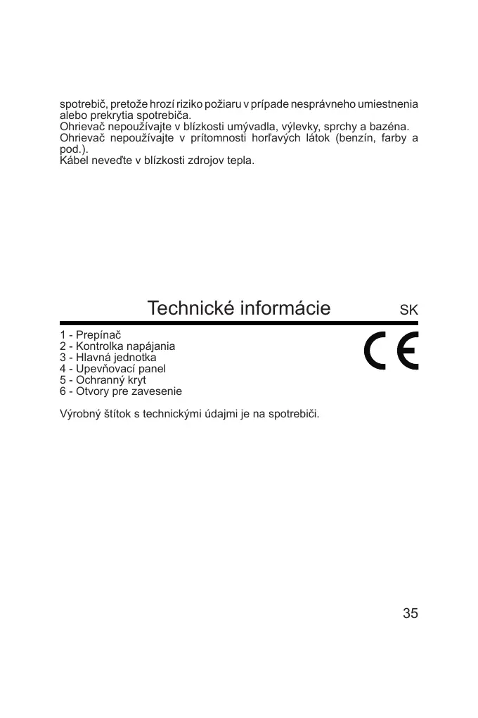 Ohrievač nepoužívajte v prítomnosti horľavých látok (benzín, farby a