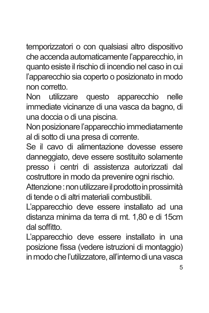 L’apparecchio deve essere installato ad una