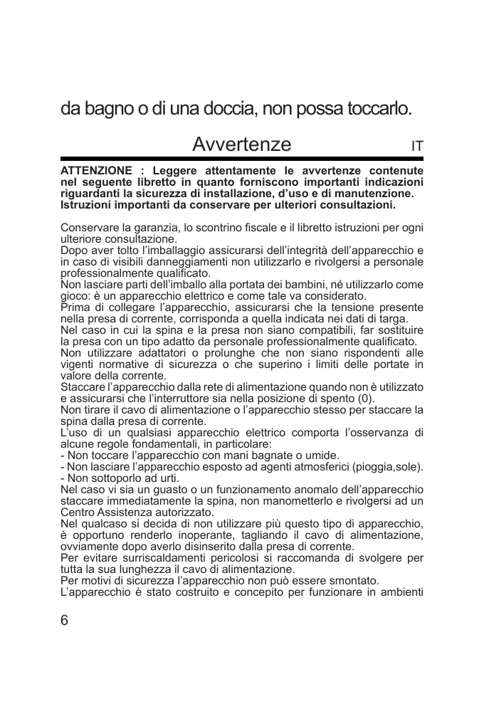 Istruzioni importanti da conservare per ulteriori consultazioni.