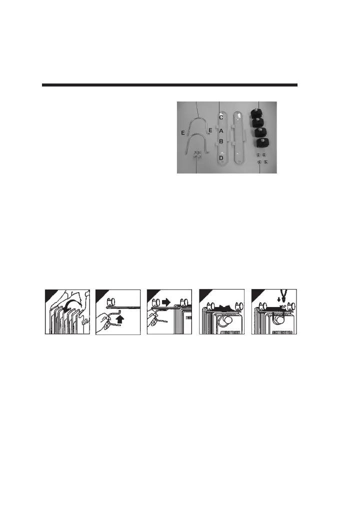 Capovolgere l’apparecchio e inlare l’estremità curva della staffa nel
