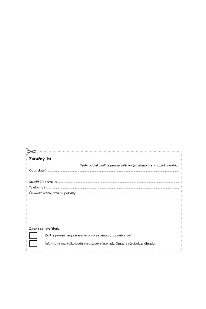 - záruka sa netýka poškodenia vonkajšieho vzhľadu alebo iných, ktoré