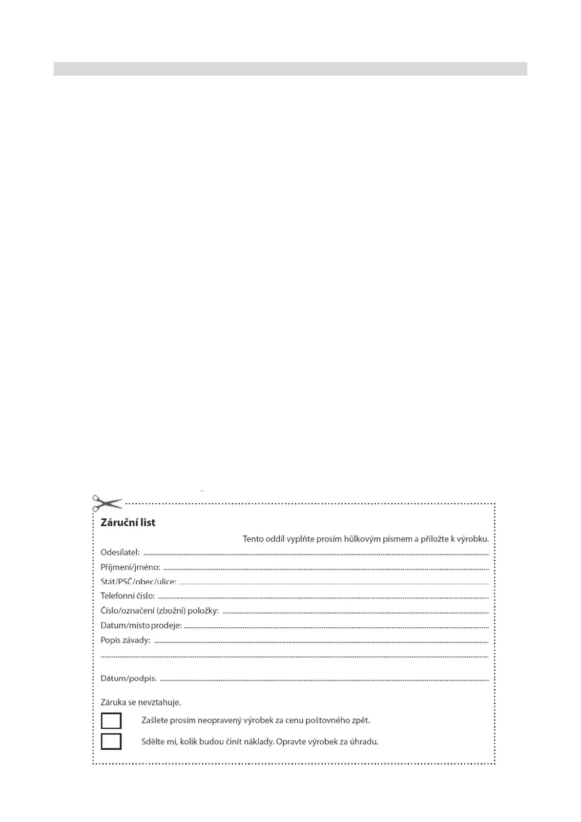 prodeje a čitelným razítkem prodejce. Záruka zahrnuje výměnu nebo opravu částí spotřebiče, které se poškodí